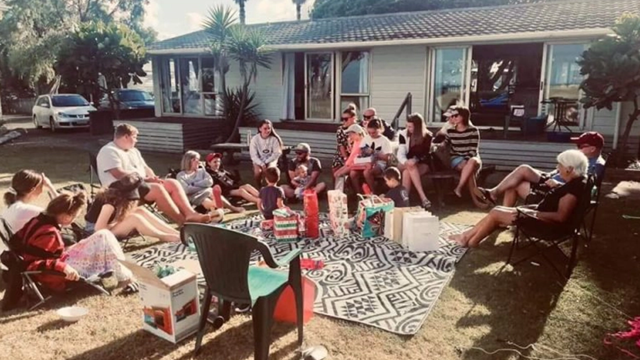 Māori family enjoys an outdoor picnic and a Christmas exchange. Photo courtesy of Gloria Miller.