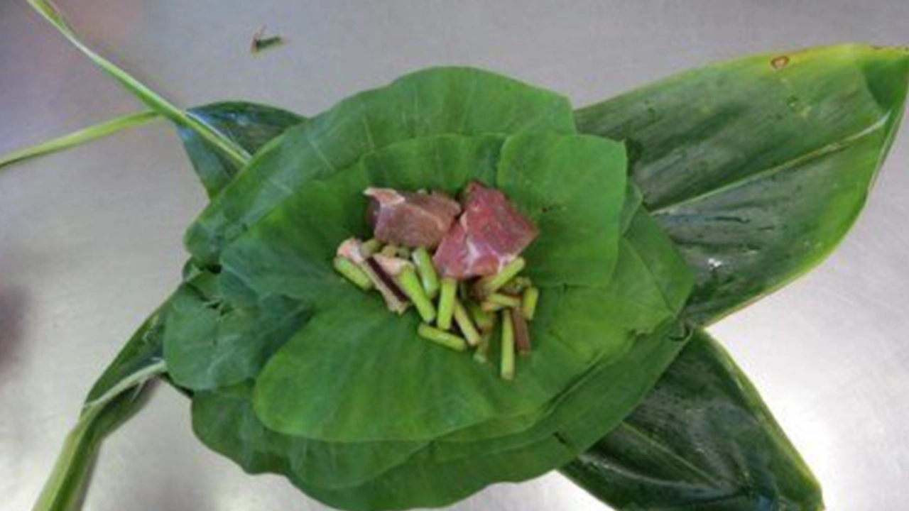 Lau Lau is a made by combining chicken, pork, and fish, and wrapping these meats in taro leaves before cooking them. It makes for a fabulous main course. It’s tasty, filling, and unique enough to impress just about anyone you play host to. Additionally, one of the best things about Lau Lau is that it goes great along side practically anything. It works well with rice, potatoes, macaroni salad, egg salad, garden salad, and more! It’s also very, very easy to prepare. All you need is meat, leaves, and salt in the following proportions.