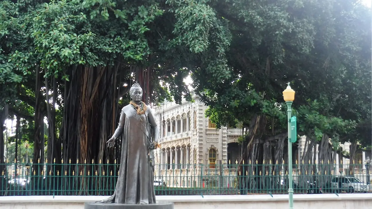 Moses tried a different route by winding his car through the city streets towards the shore and heading down to the makai (ocean) side of Diamond Head. The family was stopped once again, this time near Iolani Palace. Laverne described hearing this high-pitched sound – “wheeeeeeeeeeeee.” A bomb crashed through the palace grounds. She heard again the “wheeeeeee,” and another bomb hit the ground. Laverne’s mother ordered the children to hide in the base of the great banyan tree bordering the palace.